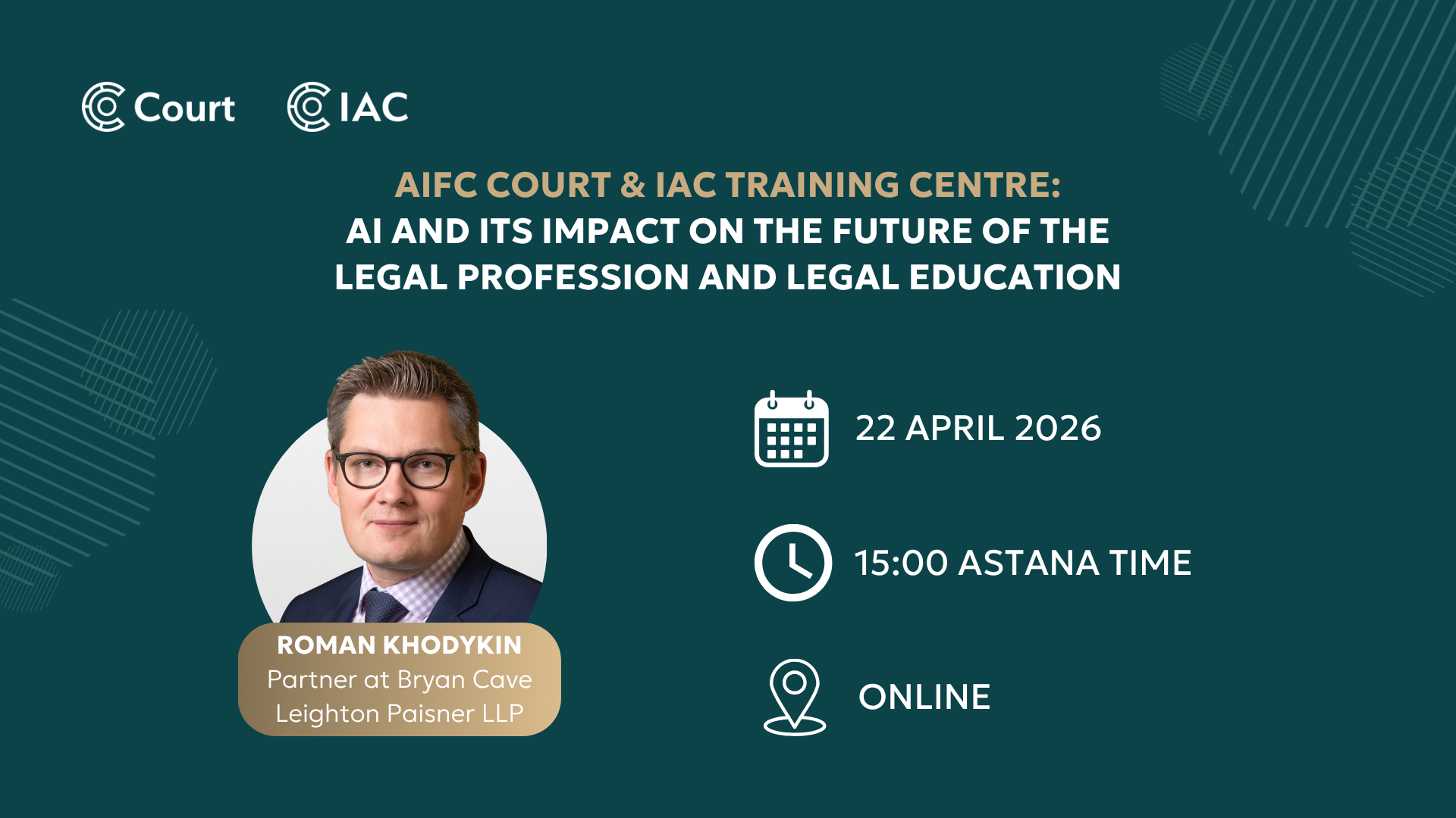 The Training Centre is delighted to invite participants to join an online training session on “AI and Its Impact on the Future of the Legal Profession and Legal Education”, delivered by Dr. Roman Khodykin, on 22 April 2026, at 15:00 Astana time.